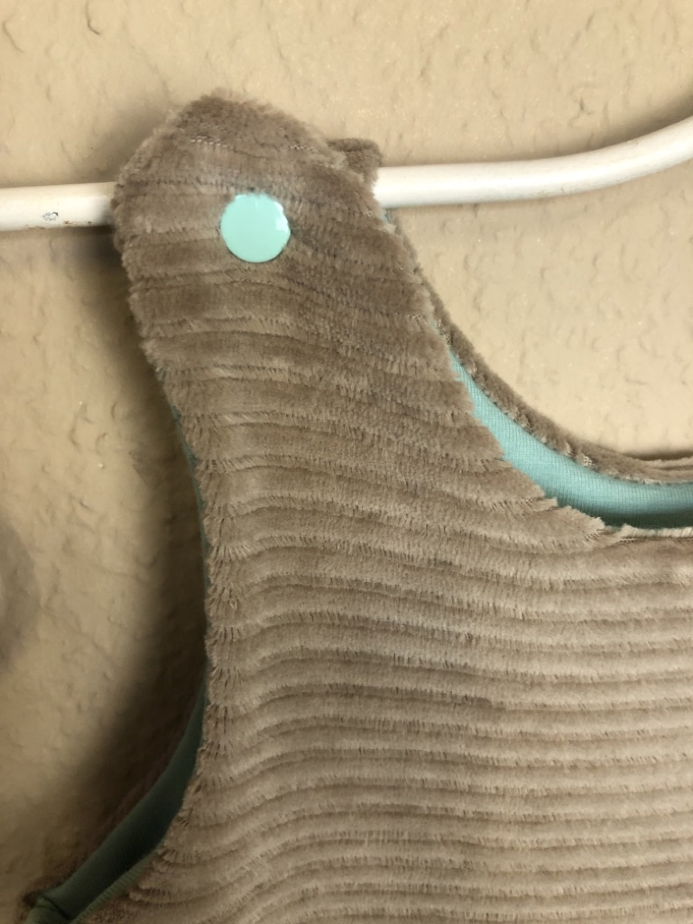 Das Kleid wird durch praktische Druckknöpfe an den Schultern verschlossen.