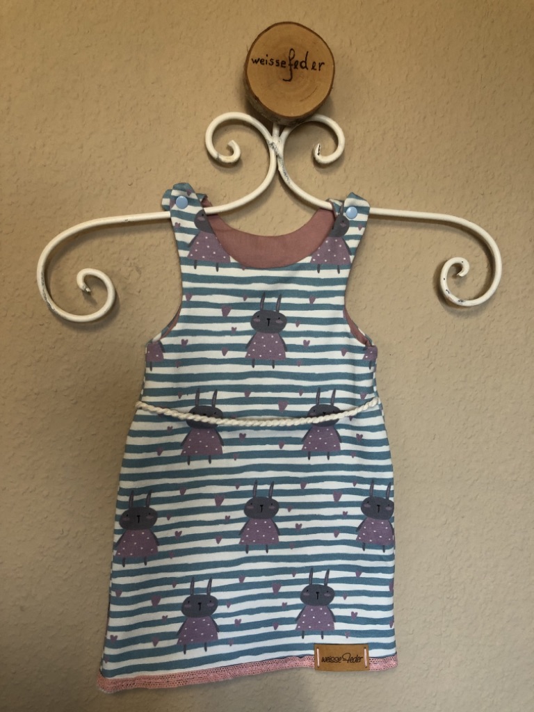 Bequemes Kleid mit Taillenband. Wird mit praktischen Druckknöpfen an den Schultern verschlossen.