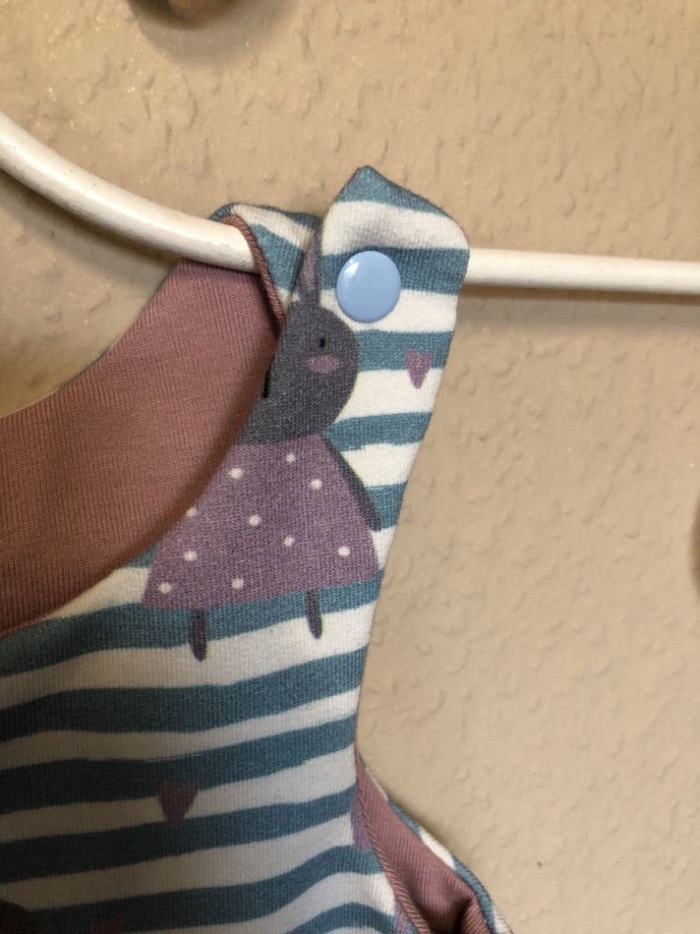 Das Kleid wird durch praktische Druckknöpfe an den Schultern verschlossen.
