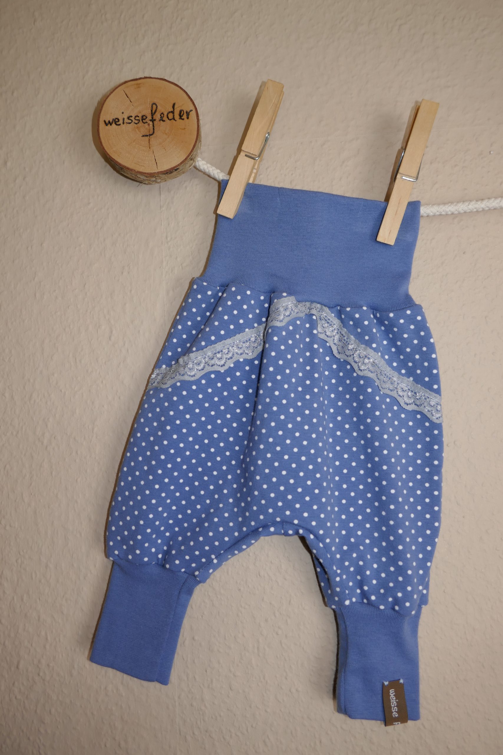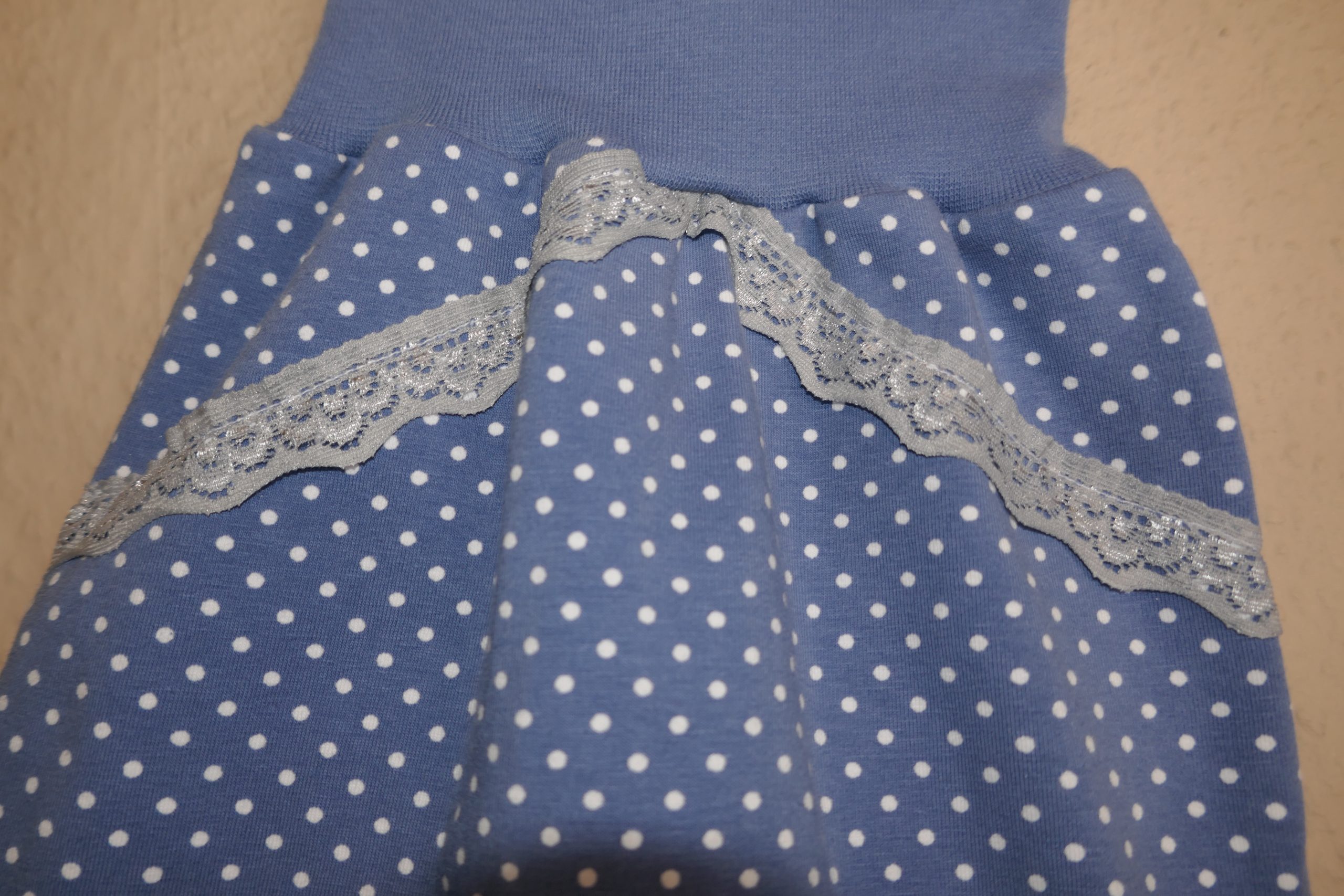 Geschnitten ist die Hose im pumpigen Design. Die Pumphose bietet einen angenehmen Tragekomfort und genügend Platz zum stampeln, dank des bequemen Schnittes. Die Hose hat ein extra breites Bündchen was für den bequemen halt sorgt und nicht einschnürt. Die Pumphose gibt es in zwei praktischen Mitwachsgrößen. Für die kleinere Größe können einfach die Beinbünchen umgeschlagen werden.