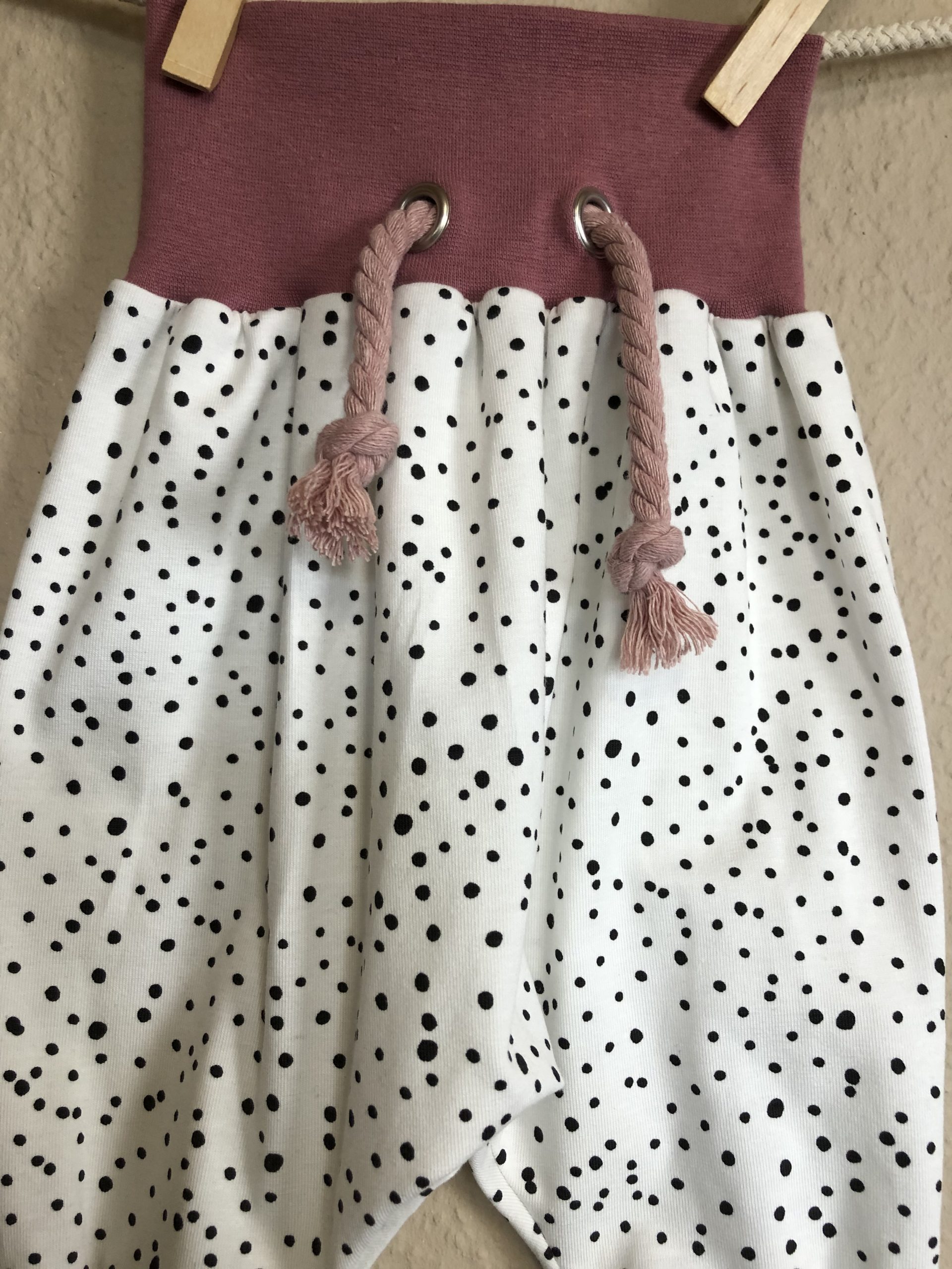 Geschnitten ist die Hose im pumpigen Design. Die Pumphose bietet einen angenehmen Tragekomfort und genügend Platz zum stampeln, dank des bequemen Schnittes. Die Hose hat ein extra breites Bündchen was für den bequemen halt sorgt und nicht einschnürt. Die Pumphose gibt es in zwei praktischen Mitwachsgrößen. Für die kleinere Größe können einfach die Beinbünchen umgeschlagen werden.