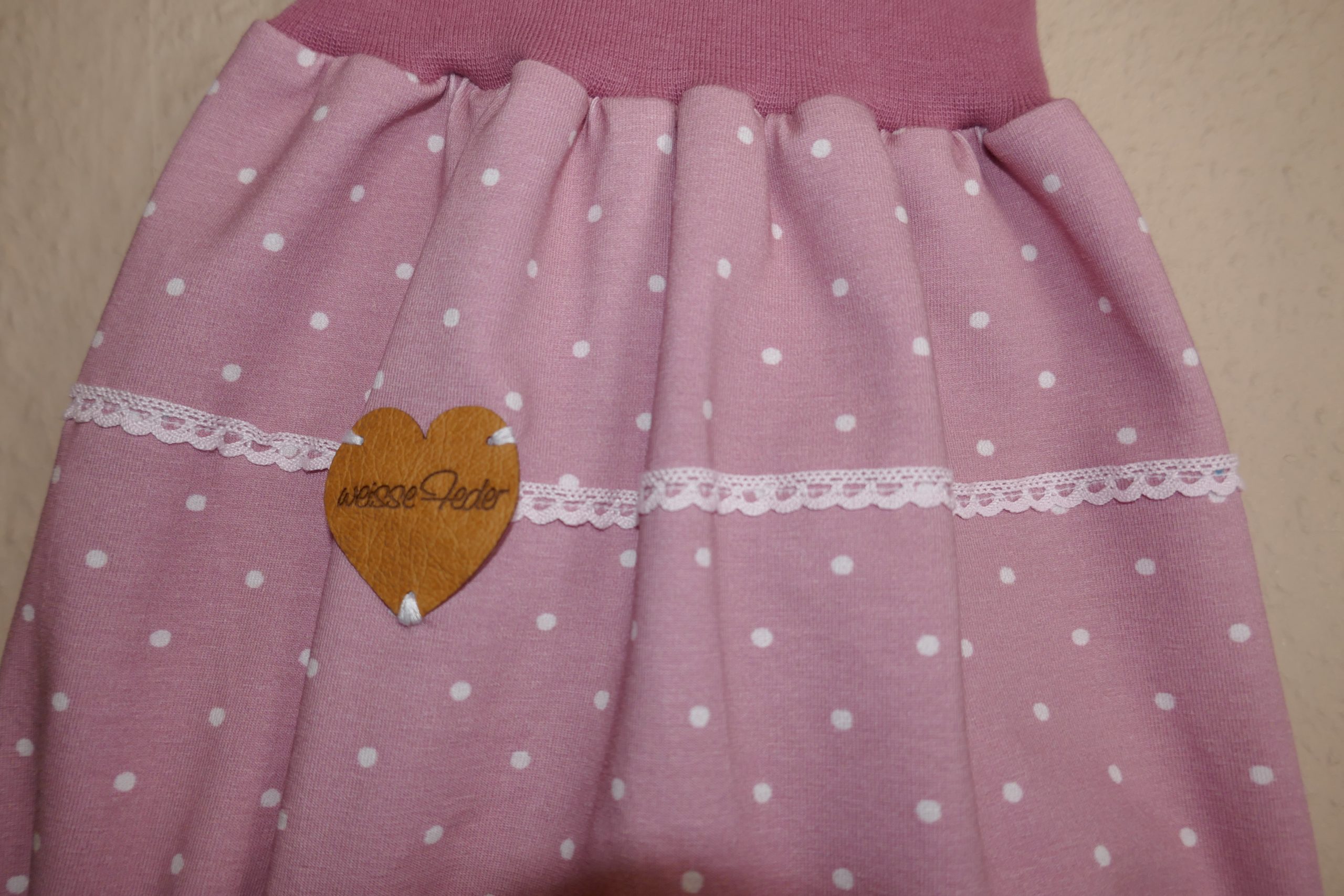Geschnitten ist die Hose im pumpigen Design. Die Pumphose bietet einen angenehmen Tragekomfort und genügend Platz zum stampeln, dank des bequemen Schnittes. Die Hose hat ein extra breites Bündchen was für den bequemen halt sorgt und nicht einschnürt. Die Pumphose gibt es in zwei praktischen Mitwachsgrößen. Für die kleinere Größe können einfach die Beinbünchen umgeschlagen werden.