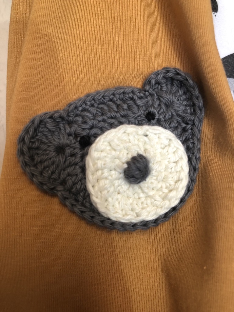 Babyhose, Pumphose Rudolf mit Häkel-Bär.