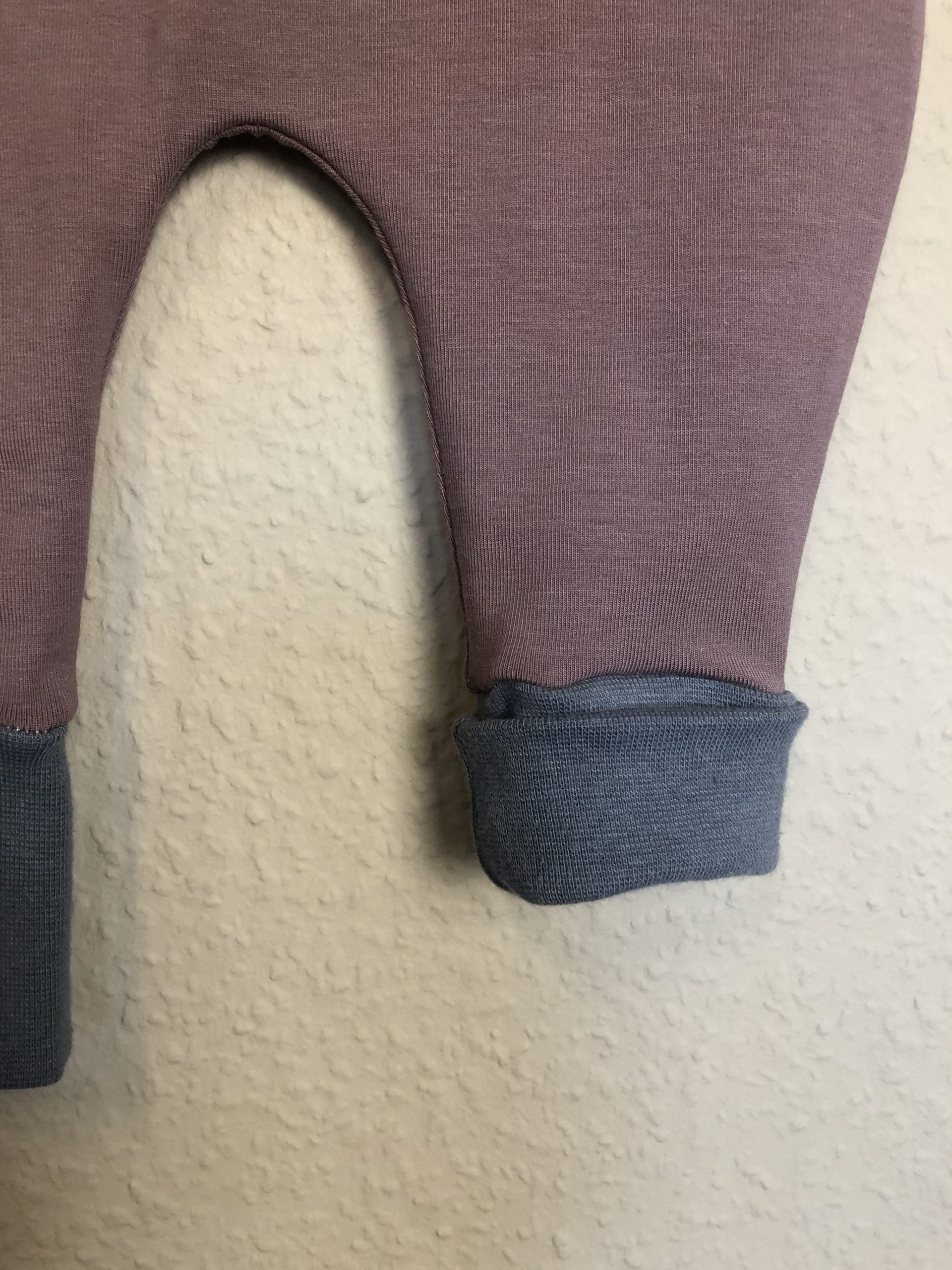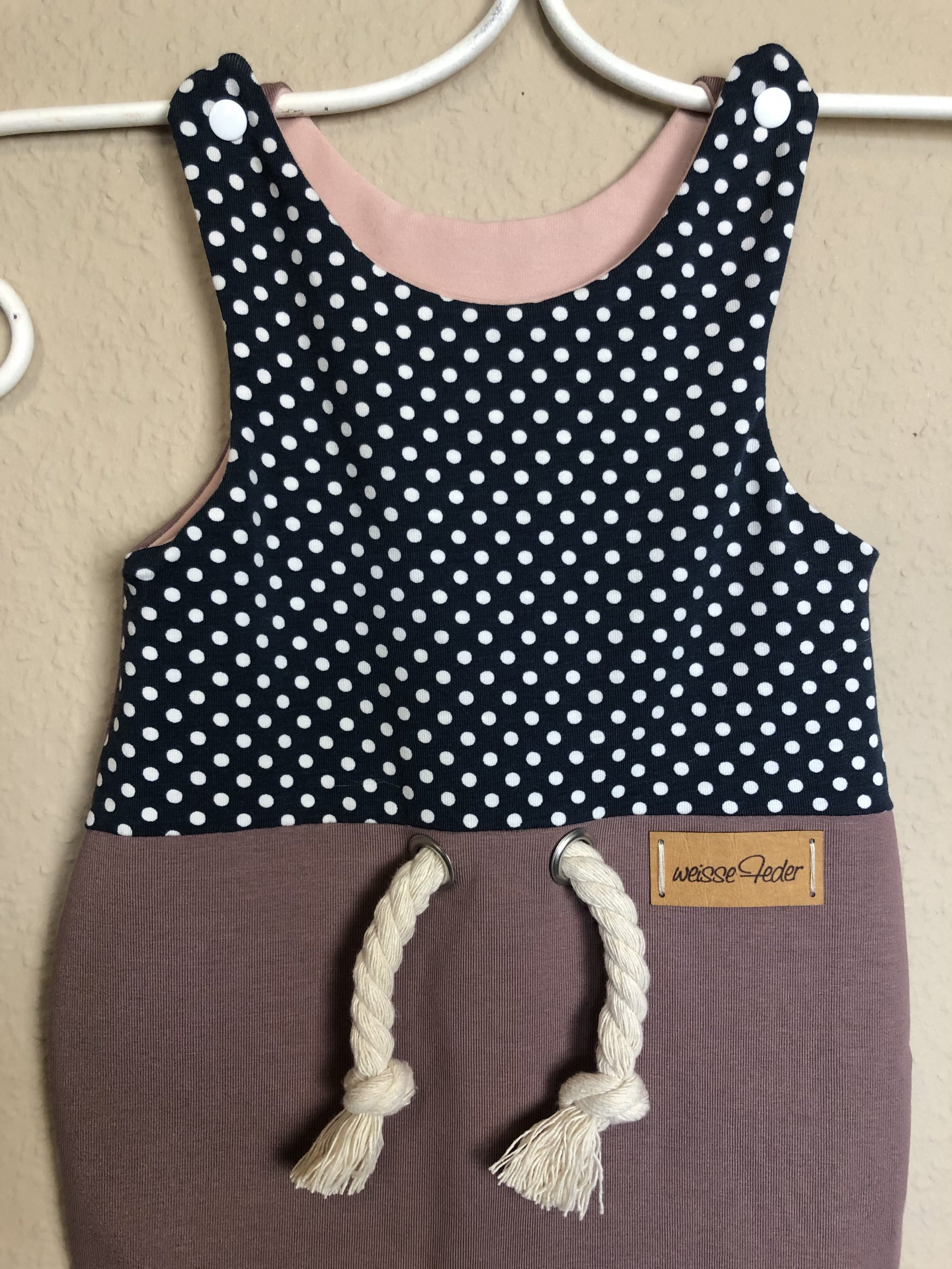 Bequemer Strampler. Wird mit praktischen Druckknöpfen an den Schultern verschlossen.